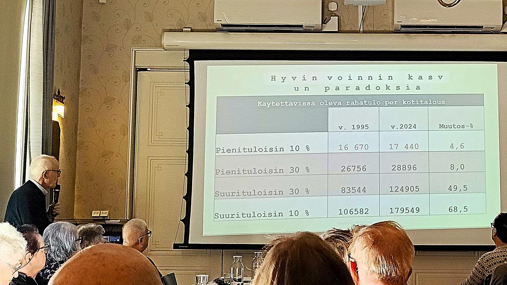 kauppaneuvos Paavo Jauhiainen kertoi Hyvinvoinnin kasvun paradoksista niin meillä kuin muualla maailmassa