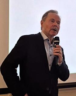 Pekka Aikio, saamelaispolitiikan uranuurtaja ja entinen pitkäaikainen saamelaiskäräjien puheenjohtaja, esitelmöi saamelaisista Suomen alkuperäiskansana.