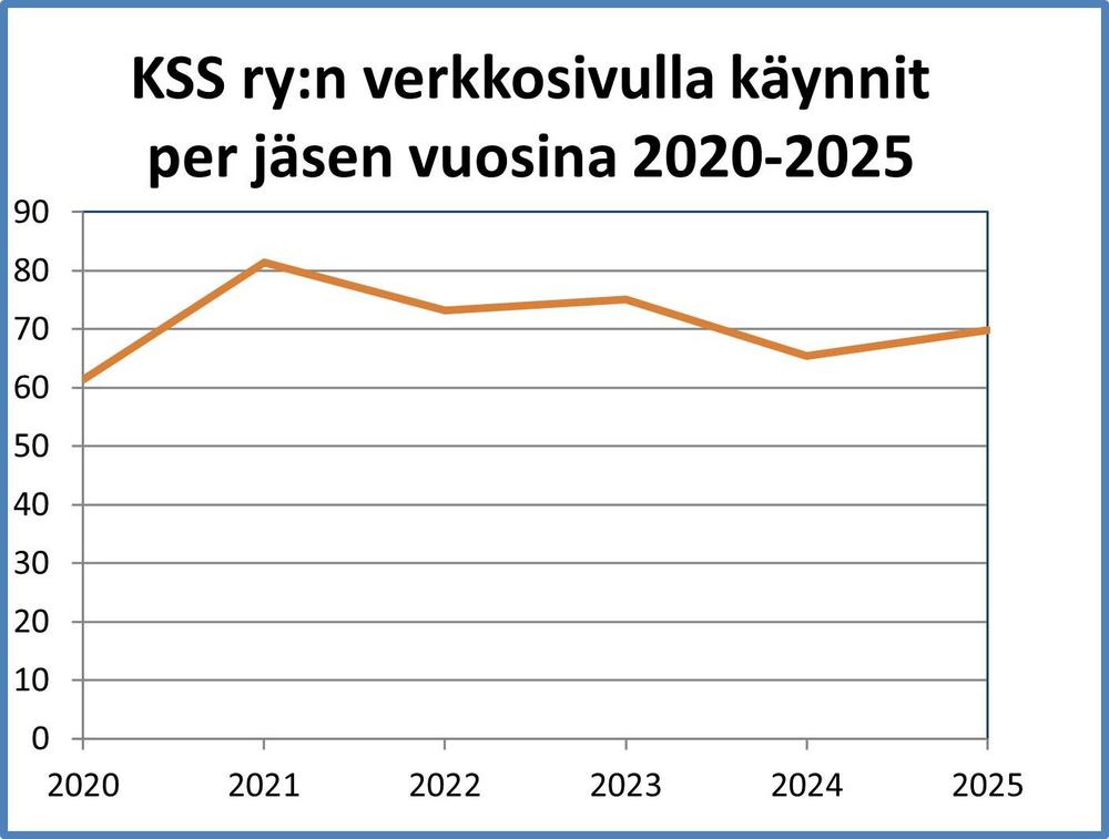 Ja tämä kolmas kuva esittää KSS ry:n verkkosivujen käyntimääriä kuukaudessa keskimäärin jäsentä kohti.